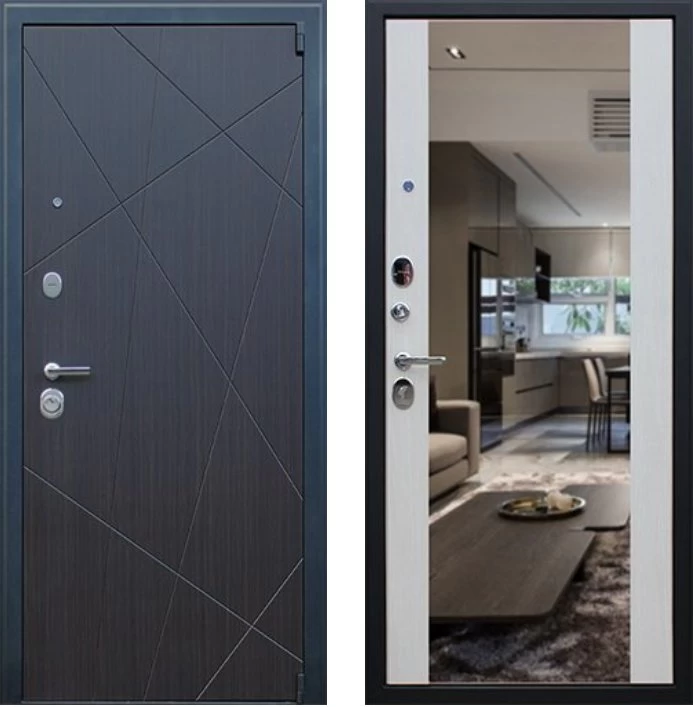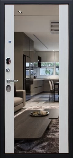 Надежная входная Дверь Вектор с зеркалом премиум класса по цене 44 650 руб. Большая толщина стали защитит от проникновения в ваш дом, квартиру или коттедж. Используется очень качественная фурнитура: замки, цилиндры, ручки, защелки. Покрытие и отделка двери изготовлено под внимательным контролем производителя. Дверь имеет долгий срок службы и гарантию.