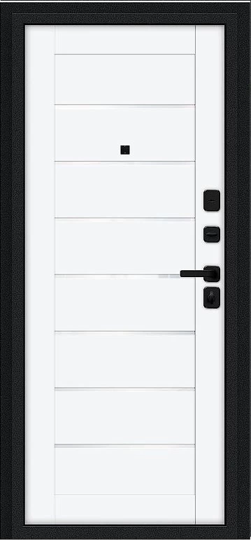 Надежная входная Дверь Браво Техно/SBlack Букле черное/White Silk премиум класса по цене 30 700 руб. Большая толщина стали защитит от проникновения в ваш дом, квартиру или коттедж. Используется очень качественная фурнитура: замки, цилиндры, ручки, защелки. Покрытие и отделка двери изготовлено под внимательным контролем производителя. Дверь имеет долгий срок службы и гарантию.